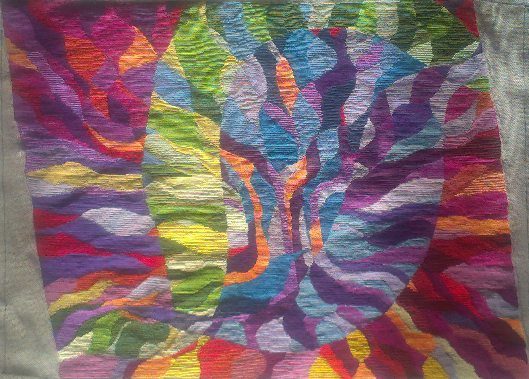 But although it’s definitely producing the look that I was after, I have to say that I don’t find I enjoy long periods of stitching this way. Dare I say it, it’s almost like weaving, in as much as I have to progress from line to line, working lineally. Which explains two things – first, why it remains only about half stitched, and second, why I am now totally concentrating on the other piece – yes, yet another tree…
